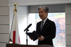 President Shiozaki presented degrees to each graduate and gave the congratulatory speech in English to the graduates.