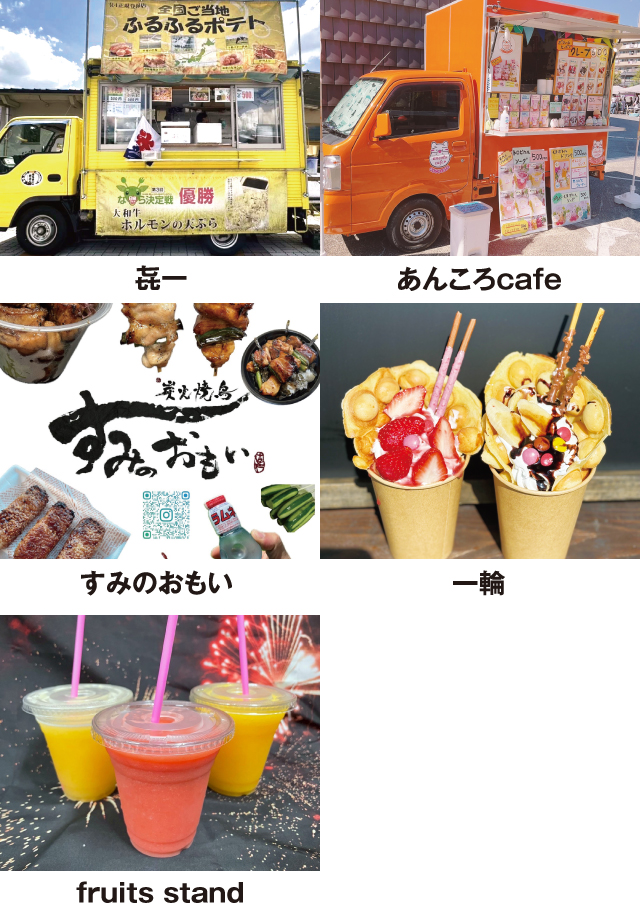 㐂一、あんころcafe、すみのおもい、一輪、fruits standが出店