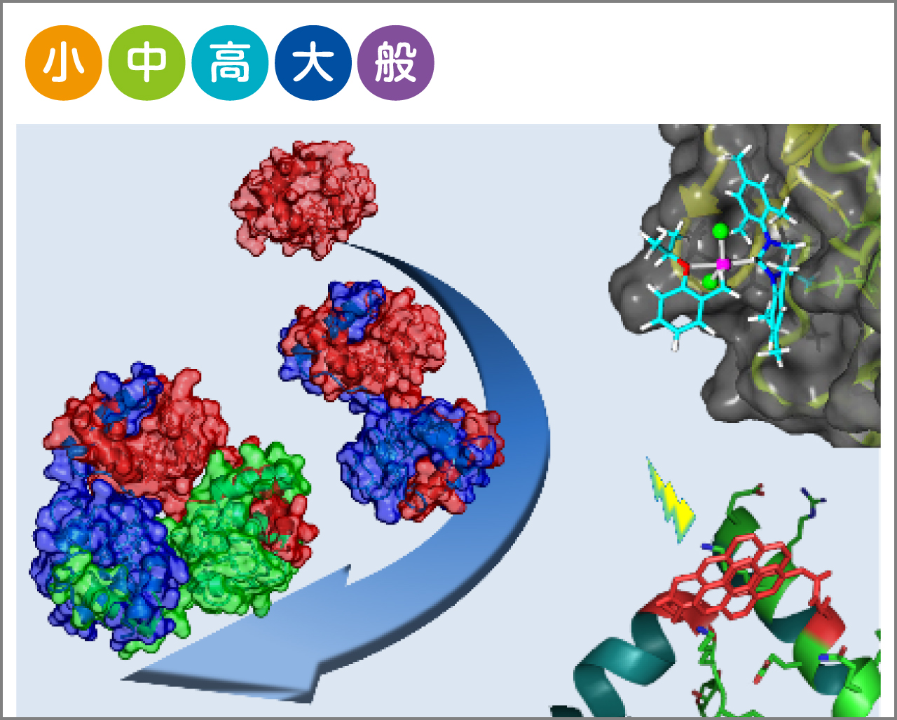 機能性人工タンパク質の創成、新規抗体の開発、タンパク質構造変性メカニズムの解明を目指し、タンパク質科学、有機・錯体化学、分光分析、コンピュータデザインの手法を用いて研究を行っています。