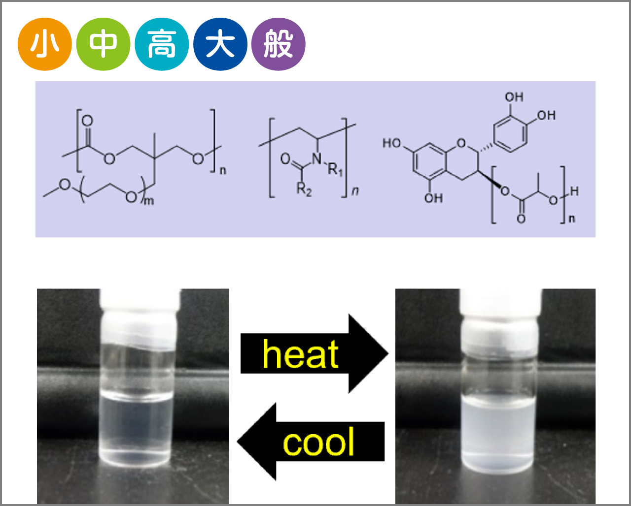 医療分野やエネルギー分野に注目し、高分子設計とナノ構造制御によって、環境や生体に適合性のある機能性高分子材料を創ります。