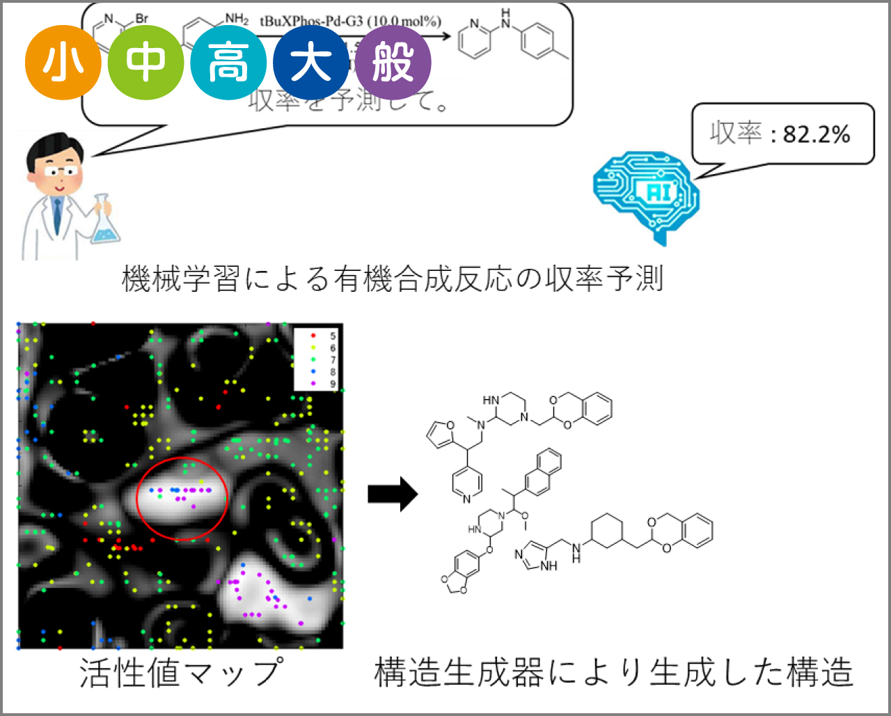 当研究室では、データ駆動型アプローチを用いて、分子設計や有機合成反応分野における課題解決に取り組んでいます。当日は、コンピュータを利用した分子設計手法や合成反応における収率予測モデルなどを紹介します。