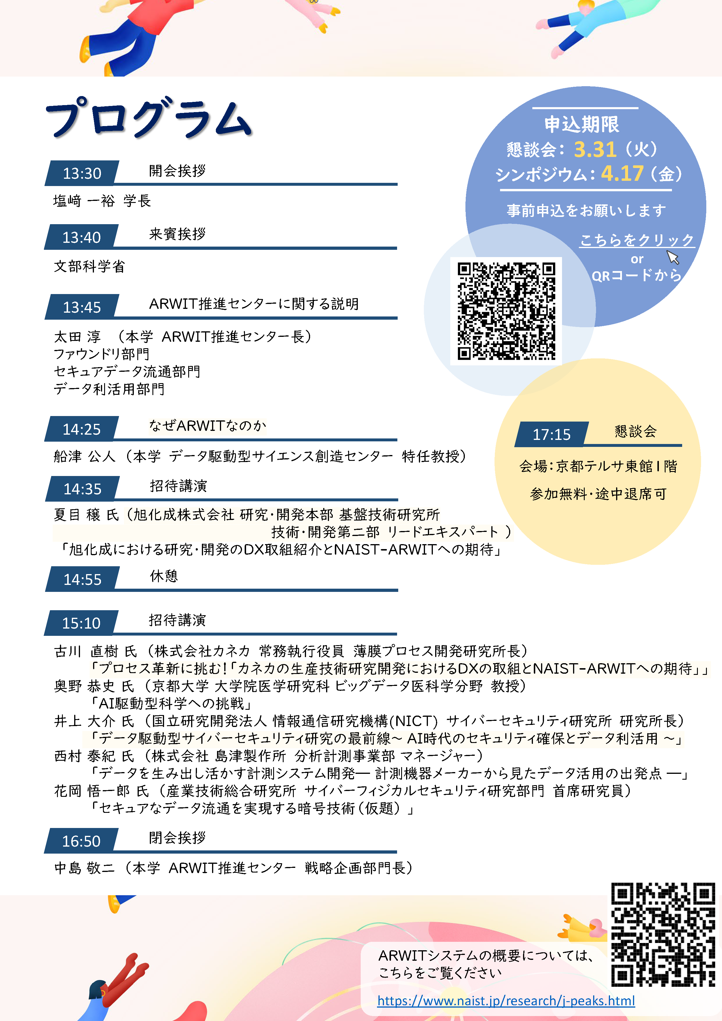 ARWIT推進センターが目指す姿や、本事業を通じて構築される研究基盤・リソースを共有し、それらを活用した研究推進や社会実装の具体的な方向性を共に考える場として、令和8年4月22日(水)にキックオフシンポジウムを開催いたします。
