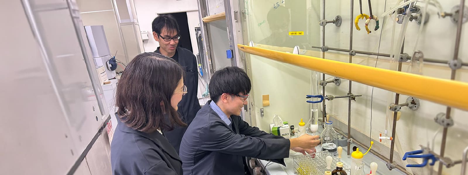 また、本学には優れた実験設備が整っている上に、技術職員の方々による専門的で丁寧なサポートが本学の大きな強みだと感じています。試料の特性や目的をお伝えすると、すぐに最適な測定方法を提案してくださり、精度の高いデータを迅速に取得していただけます。日々の研究を支えてくださる技術職員の方々の存在はとても心強いです。