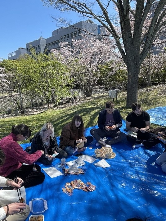留学生・外国人研究者支援室(CISS)は、4月6日(月曜日)と4月8日(水曜日)にキャンパス中央の池周辺の桜の木の下で春のランチ会を開催しました。各回には日本人・留学生に加え、教職員も参加し、2日間でおよそ110名が集まりました。