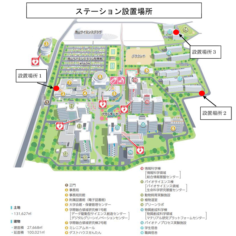 8月21日に大学構内(3か所)にシェアサイクルサービス 「HELLO CYCLING」 の専用ステーションが設置され、サービスが開始されました。